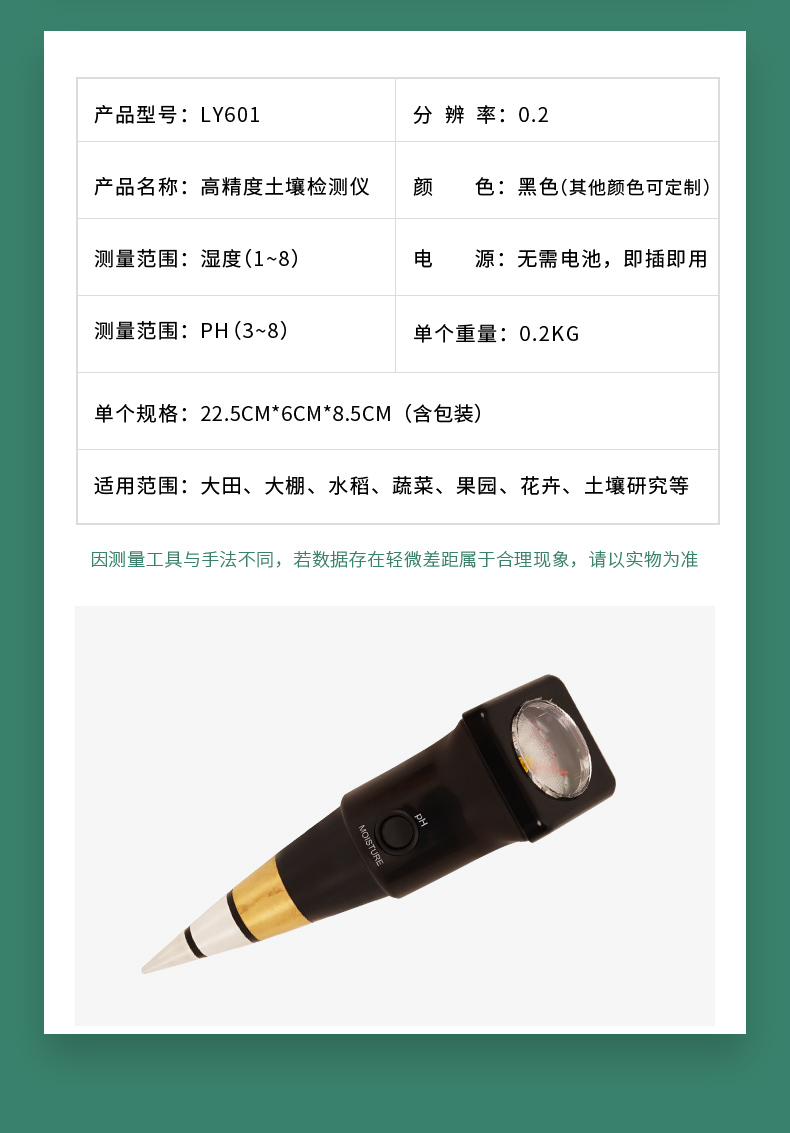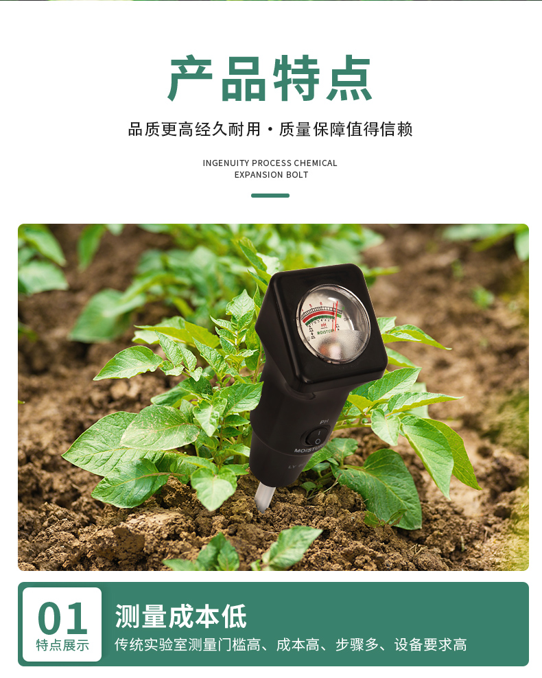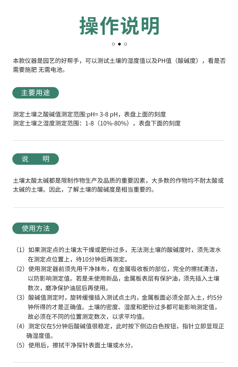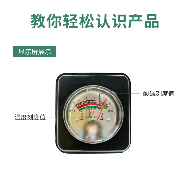 产品功能: 检测:土壤酸碱度(PH)、湿度值